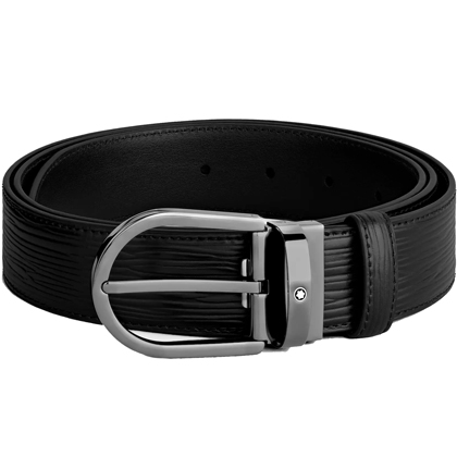 Черный кожаный ремень с подковообразной пряжкой 35мм от магазина премиальных ручек Premium Pens в Рубцовске.